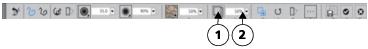Sie können die Sichtbarkeit einer Struktur schnell mit den Steuerelementen in der Eigenschaftsleiste einstellen. (1) Schaltfläche Struktur anzeigen; (2) Regler Sichtbarkeit.