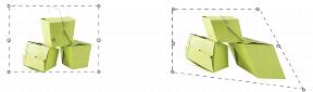 Sie können Pfadauswahlbereiche neigen und verzerren. Durch Neigen werden die vertikale und horizontale Dimensionen einer Auswahl unproportional verschoben. Durch Verzerren können Sie die Seiten und Ecken einer Auswahl in verschiedene Richtungen verschieben Sie können die Auswahl z. B. stauchen oder dehnen. Außerdem können Sie die Perspektive verzerren und dem Objekt so mehr Tiefe verleihen. Durch Neigungsverzerrung entsteht ein 3D-Effekt.