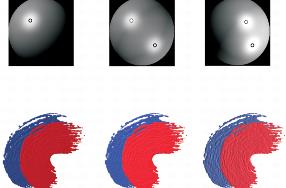 [キャンバス面の照明] コントロールを使用すると、リキッドインク ブラシの立体感を出している照明に、光源を追加したり、角度を変更したりできます。詳しくは、照明効果のプリセットを使用する.を参照してください。