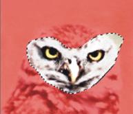 Bei den folgenden Eulen-Bildern hat die Künstlerin für jeden Bereich, den sie separat bearbeiten wollte, also Augen, Schnabel und Umriss, einen separaten Auswahlbereich erstellt und gesichert. Damit die Auswahlbereiche in den Abbildungen deutlich zu sehen sind, wurden sie in Kanälen gesichert, neu geladen und als rote Farbüberzüge angezeigt. Weitere Informationen hierzu finden Sie unter So blenden Sie Kanäle ein oder aus.