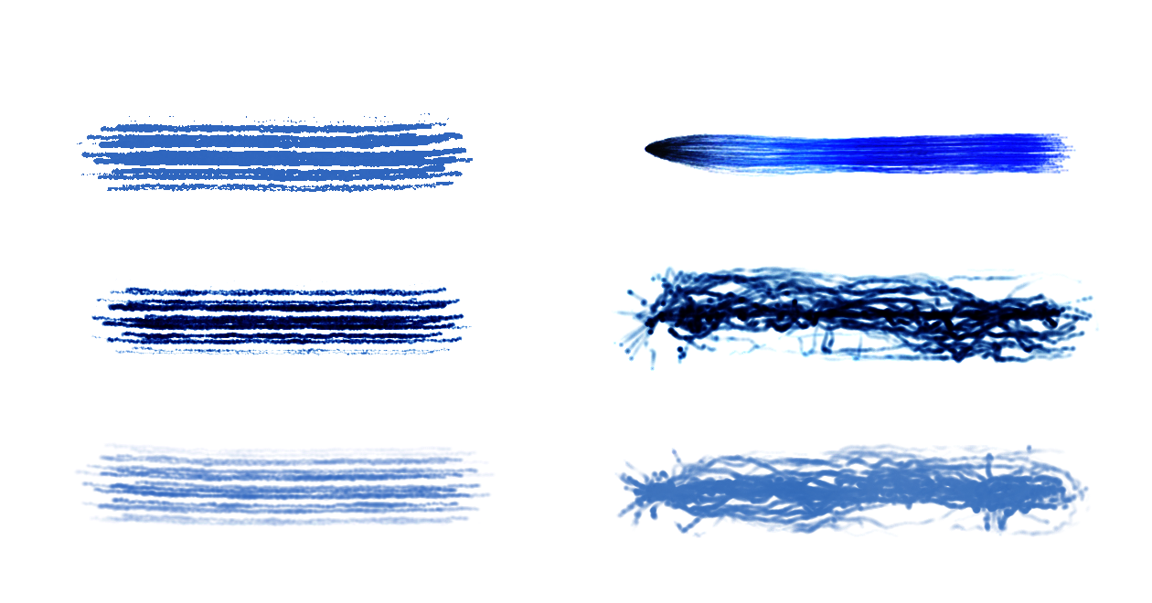 Taches dynamiques avec styles Soies (à gauche) et styles Particule (à droite)