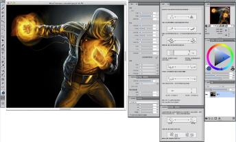 受到 Painter 藝術畫家的啟發,全新預先定義的使用者介面排列組合的設計,透過僅顯示相關面板與工具的方式,開始各種數位藝術的工作流程。其中一種介面適用於繪製插圖、建立相片藝術並開始使用革命性的全新「微粒」筆刷。還有一種介面可以僅顯示最簡略的使用者介面,以釋出空間供繪圖板使用者使用。相關詳細資訊,請參閱選擇工作區配置.