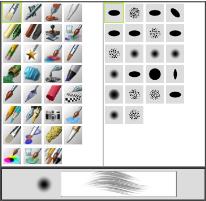 [筆刷] 材料庫面板可讓您選擇筆刷類別 (左) 和筆刷變體 (右)。