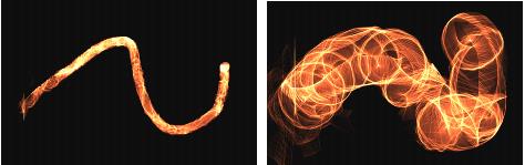 低長度抖動 (左圖) 和高長度抖動 (右圖) 筆刷筆觸