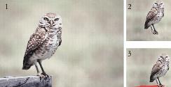 Die Funktion zum Bearbeiten von Frames umfasst das Malen oder das Anwenden von Effekten in einem Film und die Montage von Frames eines Films mit Frames aus einem anderen Film. Dies wird oft dazu verwendet, um eine sich bewegende Person aus einem Film vor dem Hintergrund aus einem anderen Film zu platzieren. Sie können die Funktion zum Bearbeiten von Frames auch dafür verwenden, ein Element aus einem Videoclip zu entfernen. Ein Beispiel dafür finden Sie unten in einem kurzen Film mit einer Eule auf einer Stange. Nach der Digitalisierung wurde der Clip in Corel Painter importiert, und die Stange wurde mit den Maskierungswerkzeugen aus jedem Frame einzeln entfernt.