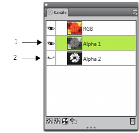 Im Panel Kanäle werden alle Alphakanäle angezeigt, die im aktuellen Dokument gesichert sind.