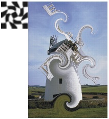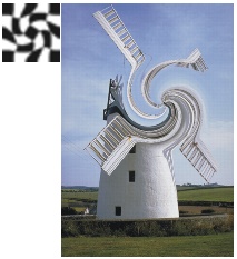 Das Werkzeug Linkswirbel verzerrt das Bild in Spiralen, die gegen den Uhrzeigersinn verlaufen.