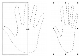 | 3 | Verschieben Sie den Zeiger über den Begrenzungsrahmen der Auswahl hinaus. |