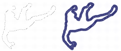 Sie können Malstriche auf Pfadauswahlbereiche anwenden. Corel Painter verwendet die aktuelle Malwerkzeugvariante, Malwerkzeuggröße, Malfarbe und Papierstruktur, um einen Strich entlang des Rahmens einer Auswahl aufzutragen. Wenn Sie Malstriche auf Auswahlbereiche auftragen, erhalten die Malstriche besondere Konturen.