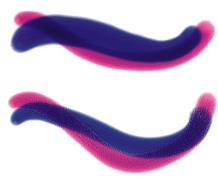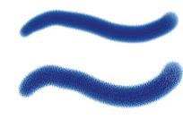 Verschieben Sie den Regler Verteilungsrate nach rechts, um weiche Kanten zu erstellen, die in die Papierstruktur verlaufen, oder nach links, um das Malen auf trockenem Papier zu simulieren.