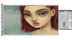 黄金分割ツールは、黄金分割という名前の伝統的な構図技法に基づいたガイドを使用する機能です。アートワークを製作する際に描画やペイント作業を進めながら鑑賞者の視点も維持できるようなバランス感覚を保つためにガイドを使用できます。