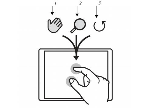 可以同时执行平移 (1)、缩放 (2) 和旋转 (3)。