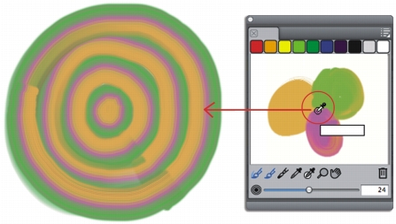 您可以在混色器面板中对多重颜色取样,然后直接在画布上绘制。