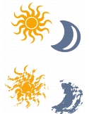 Mit der Option Zufallsverteilung beim Klonen wird das Ursprungsdokument per Zufallsprinzip aufgenommen und dann werden im Klondokument entsprechende Malstriche platziert. Es gibt keine Übereinstimmung zwischen den Positionen im Klon- und Ursprungsdokument. Das Ergebnis ist ein zufälliges Muster aus den vorherrschenden Farben und Kanten des Ursprungsbilds. Das Malwerkzeug und der Strich bestimmen das Aussehen des Musters.