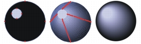 Der kleine Kreis wird an den großen Kreis angeglichen, um einen Schattierungseffekt zu erzeugen.