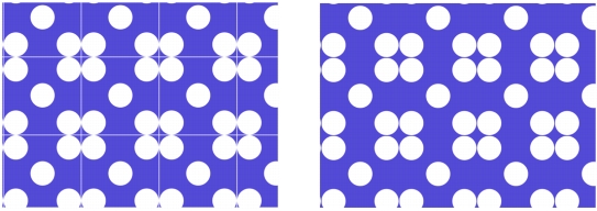 Links: Die Musterkacheln hat einen erkennbaren weißen Rand, der die einzelnen Kacheln voneinander abgrenzt. Rechts: Der weiße Rand wurde mit der Hintergrundfarbe aufgefüllt, um ein nahtloses Muster zu erzeugen.