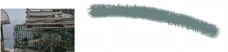 Durch Auswahl eines Bereichs des Bilds (links) wurde eine Papierstruktur erstellt. Ein Beispiel für das Anwenden eines Malstrichs auf der Arbeitsfläche unter Verwendung der neuen Papierstruktur (rechts).