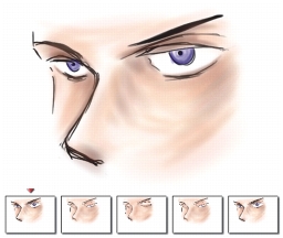 Dieses Beispiel zeigt ein zwinkerndes Auge als Animationsablauf. Sie können die Frames des Bewegungsablaufs einmal zeichnen und sie anschließend wiederholen.