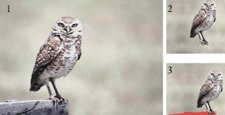 Die Funktion zum Bearbeiten von Frames umfasst das Malen oder das Anwenden von Effekten in einem Film und die Montage von Frames eines Films mit Frames aus einem anderen Film. Dies wird oft dazu verwendet, um eine sich bewegende Person aus einem Film vor dem Hintergrund aus einem anderen Film zu platzieren. Sie können die Funktion zum Bearbeiten von Frames auch dafür verwenden, ein Element aus einem Videoclip zu entfernen. Ein Beispiel dafür finden Sie unten in einem kurzen Film mit einer Eule auf einer Stange. Nach der Digitalisierung wurde der Clip in Corel Painter importiert, und die Stange wurde mit den Maskierungswerkzeugen aus jedem Frame einzeln entfernt.