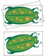 Formen können einzeln oder in Gruppen geneigt werden. Ziehen Sie zum Neigen einer Form an einem der mittleren Bearbeitungspunkte.