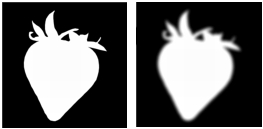 Ebenenmaske vor (links) und nach (rechts) dem Anwenden des Effekts Weichzeichnen.