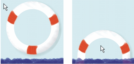 Es wird sozusagen eine einfache Animation erzeugt, wobei Sie sich jedes der verwendeten Bilder als eine Art Einzelbild (Frame) in dieser Animation vorstellen können. Im Folgenden wird jedes Einzelbild als ein “Status” bezeichnet. Corel Painter unterstützt für jedes Rollover drei mögliche Statuszustände: