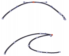 Lorsque le tracé est une courbe, des demi-tangentes partent des points d’ancrage. Sous forme de lignes droites, elles indiquent la direction de la courbe. Elles comportent des « poignées » que vous pouvez faire glisser pour modifier la courbe du segment.