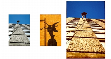 Vous pouvez appliquer la couleur et la luminosité d’une image source (au centre) à l’image sur laquelle vous travaillez (à gauche) pour obtenir un nouvel effet (à droite).