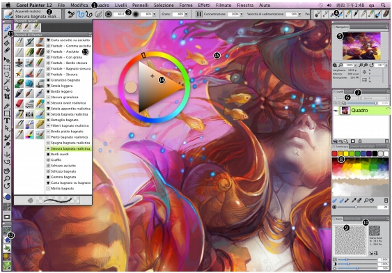 Consente di accedere rapidamente ai seguenti pannelli di librerie di materiali: motivi, sfumature, immagini base, trame e pennelli compositi.