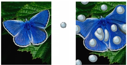 Le selezioni aiutano a controllare la procedura di marmorizzazione quando si intende realizzare un effetto ben preciso. Ad esempio, il percorso del rastrello inizia solitamente dal bordo dell’immagine. Se, invece, si desidera farlo cominciare dal centro di una bolla, occorre selezionare un’area che inizi dal centro della bolla. |