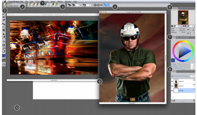 Contains the elements that help you access the tools and commands you need to paint and modify images.