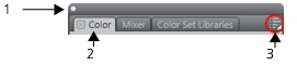 A typical palette features a header bar (1), panel tabs (2), and a Panel Options button (3).