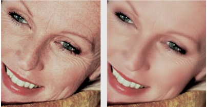 O comando Suavização de pele suaviza os tons de pele e diminui rapidamente a aparência das rugas e imperfeições.