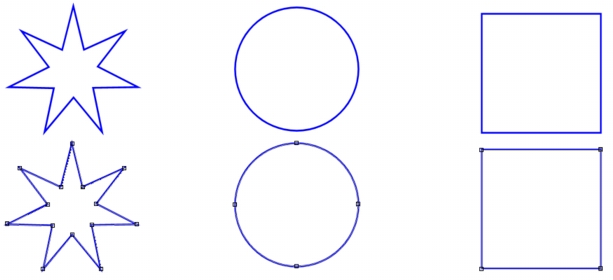 É possível converter qualquer objeto vetorial selecionado, incluindo texto, em um caminho totalmente editável (como se tivesse sido criado pela ferramenta Caneta). Isso permite usar o complemento inteiro dos comandos de edição de nós da ferramenta Caneta para modificar o objeto convertido.