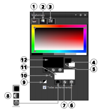 Principais componentes da paleta Materiais