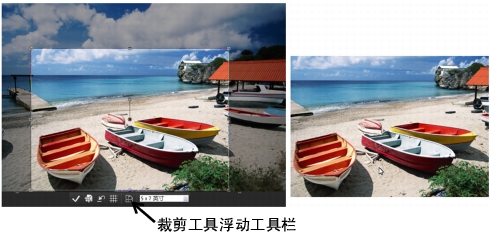 在“工具选项”面板上或“裁剪”工具的浮动工具栏上,单击“应用”按钮 |