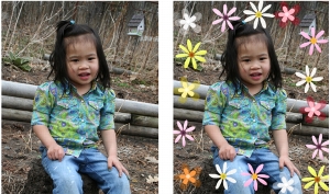 Mit dem Bildstempelwerkzeug können Sie mit einer Reihe von Objekten malen. Sie können einer Picknickszene beispielsweise Schmetterlinge und Käfer hinzufügen oder ein Bild mit Blumen einrahmen. Sie können die in Corel PaintShop Pro enthaltenen Bildstempelwerkzeuge verwenden oder eigene Bildstempel erstellen.