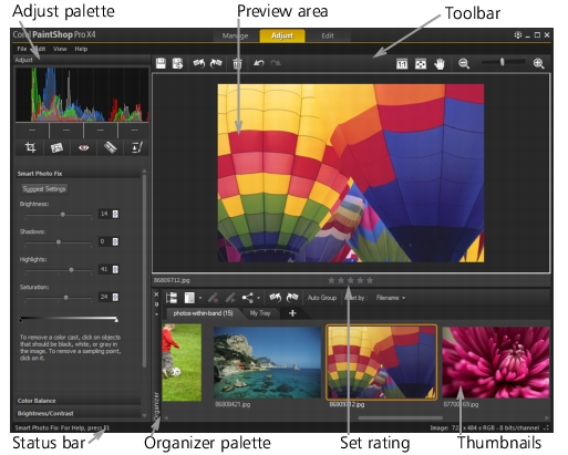 Adjust is your workspace for quick edits. It lets you fix and enhance your photos by offering a set of the most commonly-used tools.