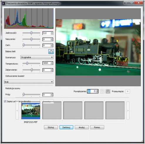 W oknie dialogowym Pracownia obrazków RAW z aparatu