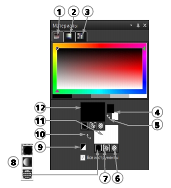 Панель «Материалы» можно в любое время вывести на экран. Во время работы можно оставлять ее открытой или выводить на экран по мере необходимости.