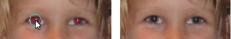 Met het gereedschap Rode ogen vervangt u de rode kleur in de pupil van het onderwerp door een donkergrijze kleur, zodat het oog er weer natuurlijk uitziet.