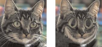 U kunt het gereedschap Penseel Verwringen gebruiken om karikaturen te maken.