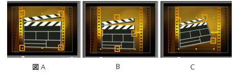 [クリップを変形]オプションボックスを選択します。黄色のハンドルが表示されるので、以下の手順に従います。