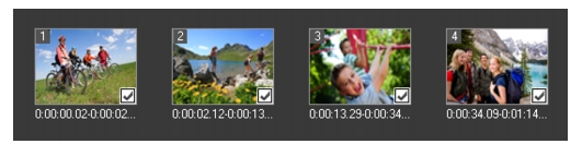 在“故事板视图”中,选择每个您想要放到影片中的场景,然后单击标记场景。 |