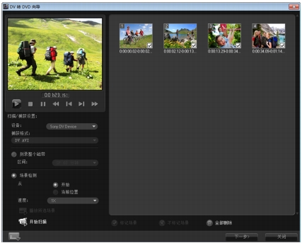 扫描 DV 磁带,选择要添加到影片的场景。