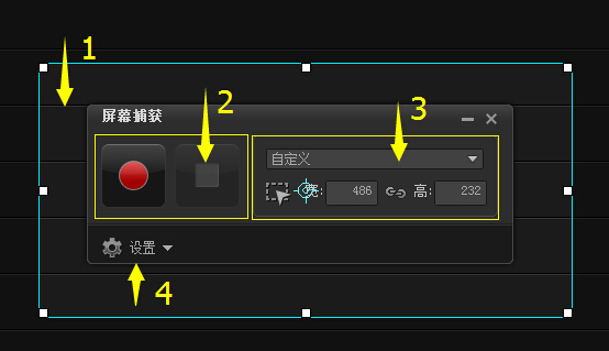 | • | 在捕获工作区中,按一下屏幕录制来启动屏幕录制工具列。Corel 会声会影 Pro 主程序视窗会最小化到背景,屏幕录制工具列随即出现。 |