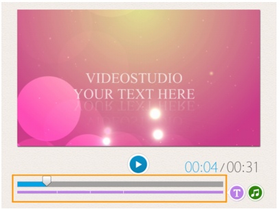 Corel VideoStudio bietet erweiterte Funktionen für das Bearbeiten von Titeln. Wenn Sie ein Projekt in FastFlick fertig gestellt haben und Titel in Corel VideoStudio bearbeiten möchten, klicken Sie auf die Registerkarte Speichern und freigeben und dann auf In VideoStudio bearbeiten.