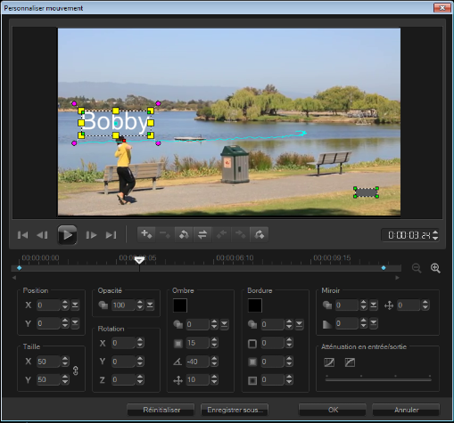 | 4 | Lancez la lecture de la vidéo pour tester l'animation. Lorsque vous avez fini, cliquez sur OK. |