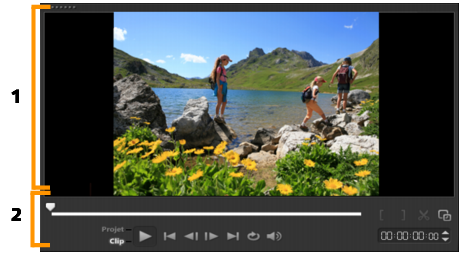 Le panneau Lecteur comprend 1. la fenêtre d'aperçu et 2. la zone de navigation.