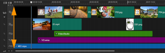 Faites glisser le clip pour l'insérer à partir de la bibliothèque dans la position voulue sur la ligne de temps. Dès que le nouveau clip est en place, tous les clips auxquels l'Édition avec effet de vague a été appliquée sont décalés en conséquence, tout en conservant leurs positions respectives sur la piste. |